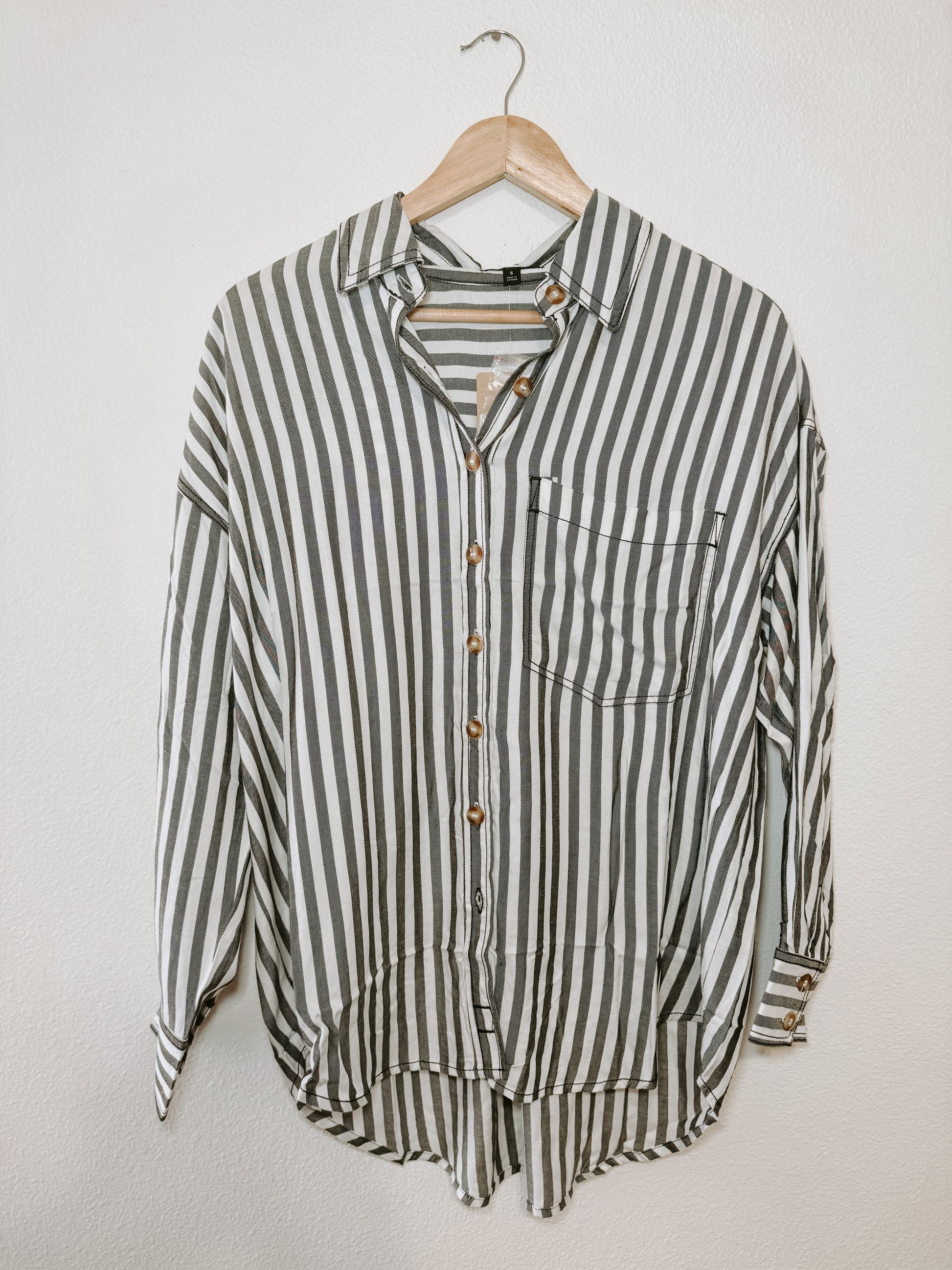 The perfect fall button up! Tan and cream, great length, perfect to style with denim. Runs TTS